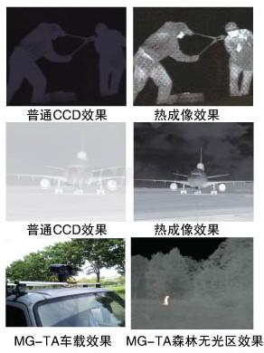 伪装是以防可见光观测为主,犯罪分子作案时通常会隐蔽在草丛及树林中,由于野外环境的恶劣及人的视觉错觉,容易产生错误判断。红外热成像仪是被动接受目标自身的热辐射,人体和车辆的温度及红外辐射一般都远大于草木的温度及红外辐射,因此不易伪装,也不容易产生错误判断