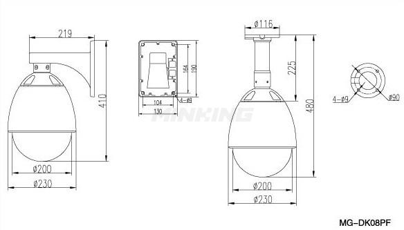 明景电子(MINKING)产品 >> 明景智能球型云台系列 >> MG-DK08PF,明景(MinKing)8''室外智能球型云台