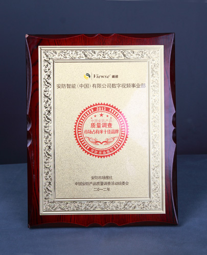 2012年12月1日,由安防市场报、天安网举办的2012年中国安防产品质量调查颁奖典礼在北京临空皇冠假日酒店隆重召开,数字视频事业部再获荣耀,旗下viewse品牌被评选为“中国安防产品调查市场占有率十佳品牌”。